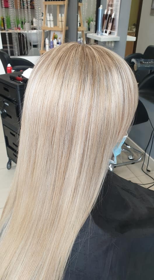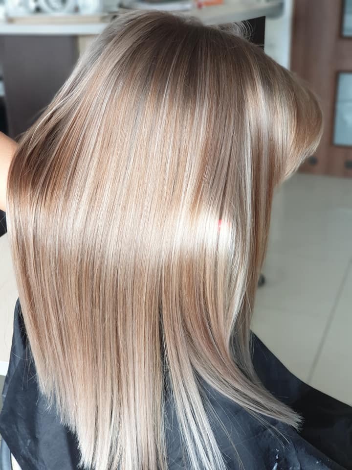 Naturalny chłodny blond z refleksami i taflowym wykończeniem – subtelna elegancja z klasą.