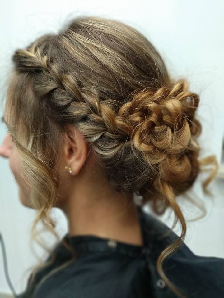 Klientka zgłosiła się z prośbą o eleganckie, a zarazem dziewczęce upięcie na wyjątkową okazję. Marzyła o fryzurze z warkoczami, która będzie trwała przez wiele godzin, a jednocześnie wyglądać lekko i romantycznie.